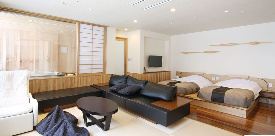 温泉露天風呂とサウナ付きスイートが2枚目です。ここはボミとフーウェイが同じ部屋で話をしていました。一泊大人2名で約9万円前後です。