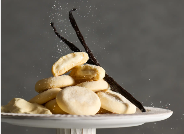 素材にもこだわり、焼き上がりの口溶けの良さと深いバニラの香りが楽しめるプレミアムな味わいです。